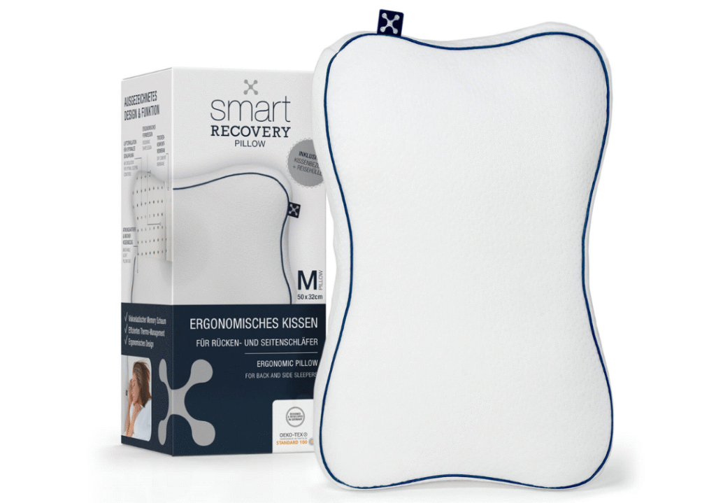 Das smartsleep® Recovery Pillow ist ein hochwertiges, ergonomisches Kissen, das Kopf und Nacken stützt und für gute Belüftung sorgt. Trotz des höheren Preises und der erforderlichen Eingewöhnungszeit ist es aufgrund seiner sehr positiven Bewertungen eine sichere Wahl für alle, die ihre Schlafqualität verbessern möchten.